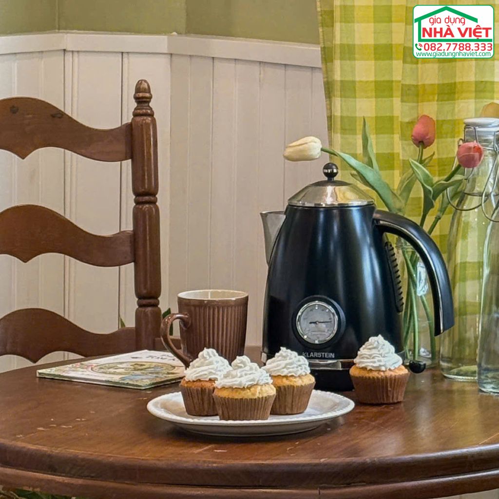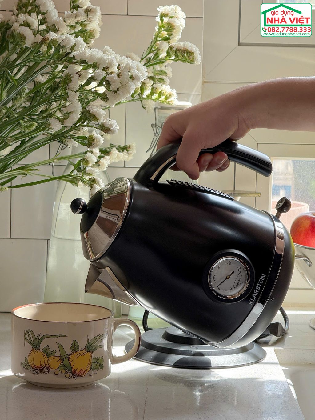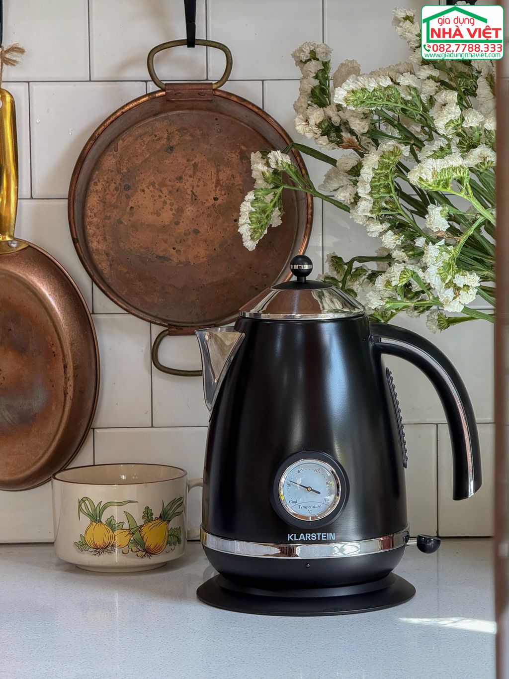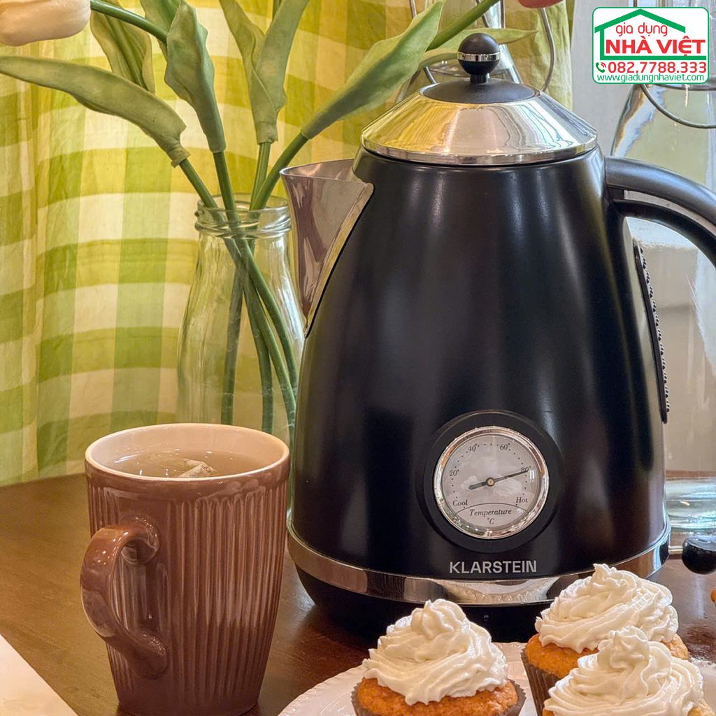- Chỉ cần Ấm siêu tốc KLARSTEIN 1.7L – buổi sáng dậy đã có ngay cốc nước ấm, tối khuya thèm mì hay cacao cũng bật lên là sôi trong vài phút