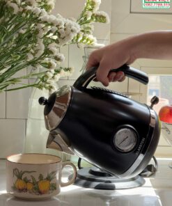 - Dung tích 1,7 lít công suất 2200W thiết kế kiểu dáng giống như một chiếc ấm uống trà cổ điển.