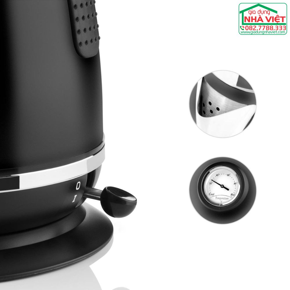 - Trên thân ấm có mặt đồng hồ nhiệt kế đo nhiệt độ nước đang đun, mang đến cho người dùng một cảm giác mới lạ.