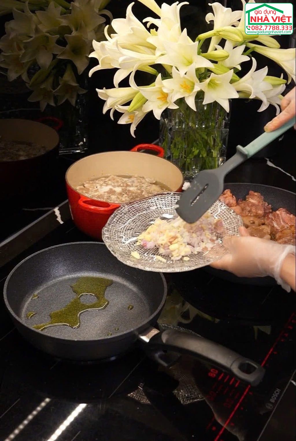- Với lớp chống dính Silic Cacbua siêu bền giúp chiên cá, rán thịt hay xào rau đều không dính, không khét, lật nhẹ là xong, không cần kỳ cọ mệt mỏi.