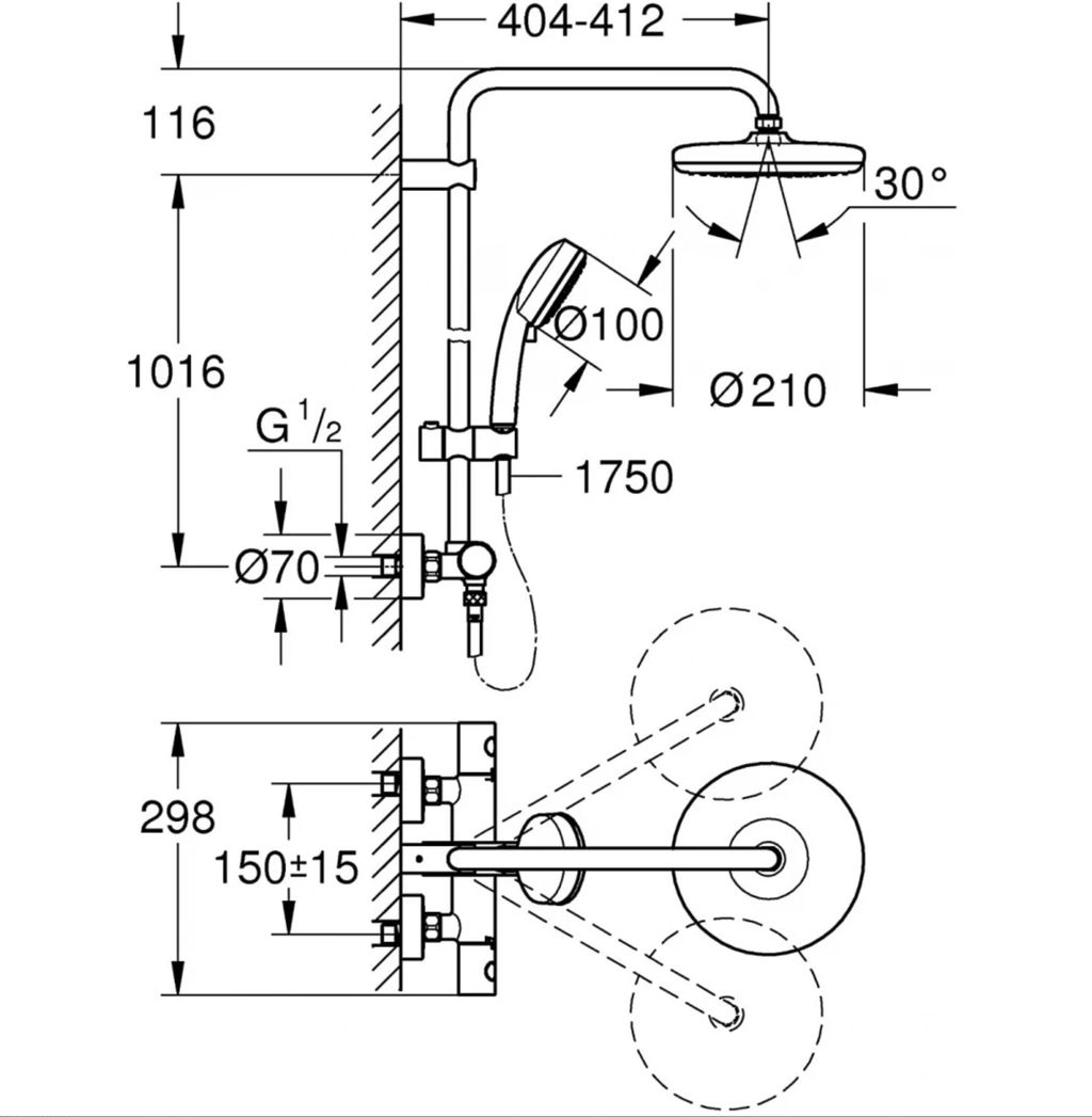 Bộ sen âm tường ổn nhiệt tròn tempesta 210 Grohe 34727000