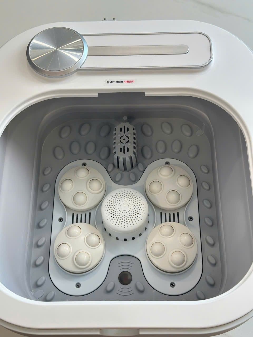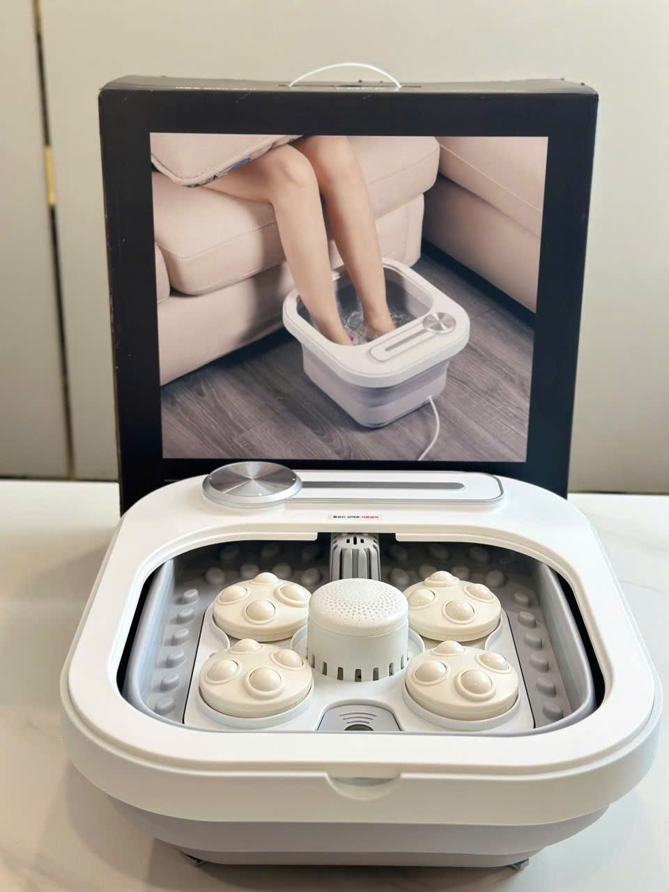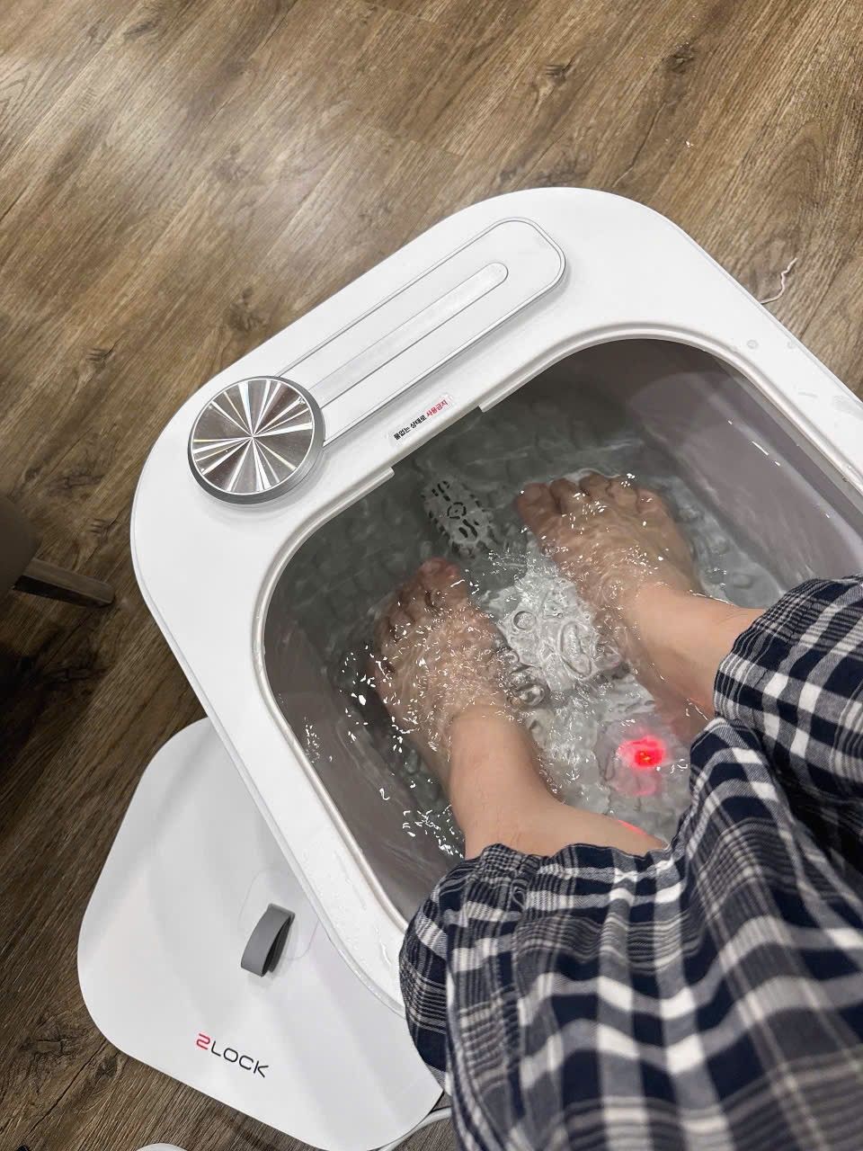 Chiếc chậu ngâm chân thời 4.0 cực xịn sò nhà 2LOCK Korea kèm điều khiển từ xa, hệ thống 4 mâm xoay với 16 con lăn tự động, vật liệu cao cấp, có thể gấp gọn, tự làm nóng nước, có khoang chứa hương liệu, đặc biệt chậu cao ngâm đc đến ống chân cực thích.