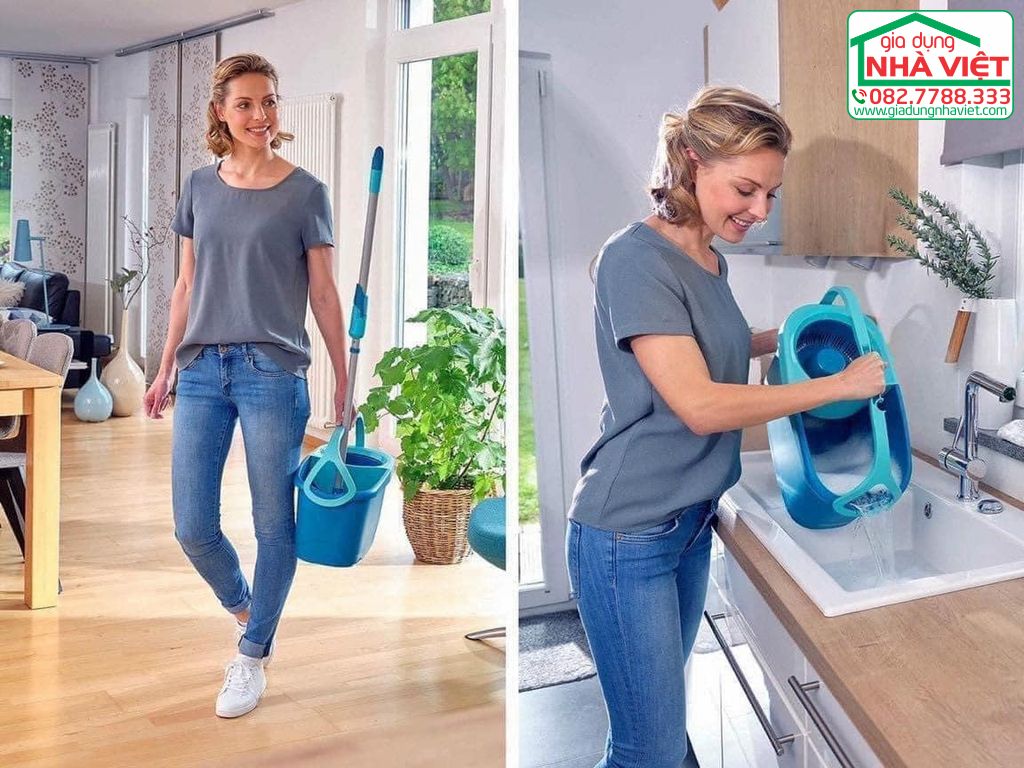 - Xô đựng thể tích lớn có thể dễ dàng đổ sạch: Với thiết kế giúp hỗ trợ đổ nước sau khi lau nhà, xô đựng nước thể tích 6 lít của bộ lau nhà có thể đổ sạch một cách dễ dàng. Các bánh xe tích hợp cũng giúp cho việc di chuyển xô đựng nước nhẹ nhàng, nhanh chóng hơn.