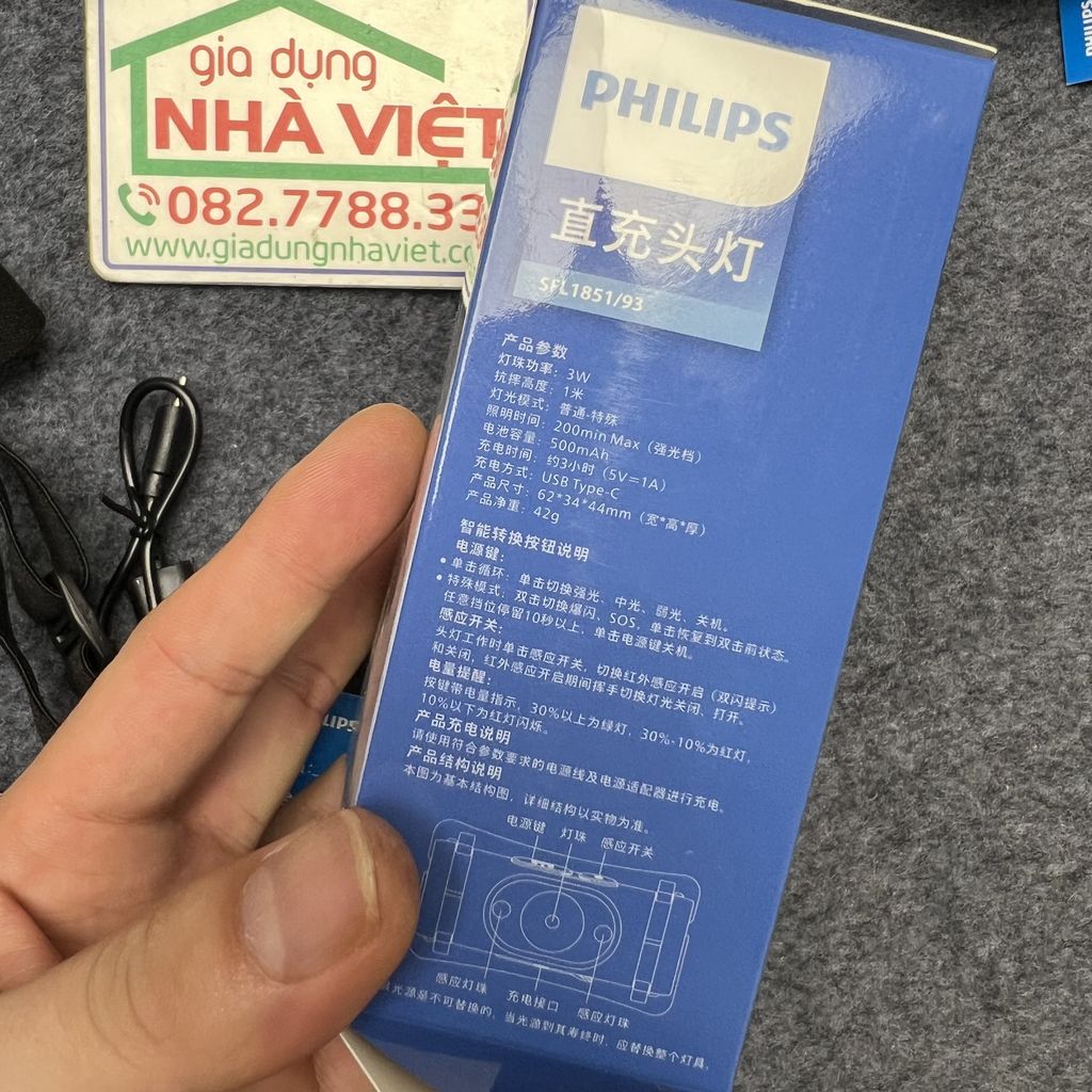 Đèn pin đội đầu PHILIPS SFL1851/93 Siêu sáng sạc USB cảm biến tiện lợi