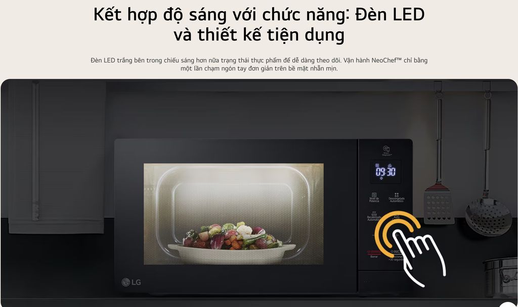 - Trang bị nhiều tiện ích: 3 chế độ tự động, đèn LED trắng trong khoang lò, khóa bảng điều khiển,…