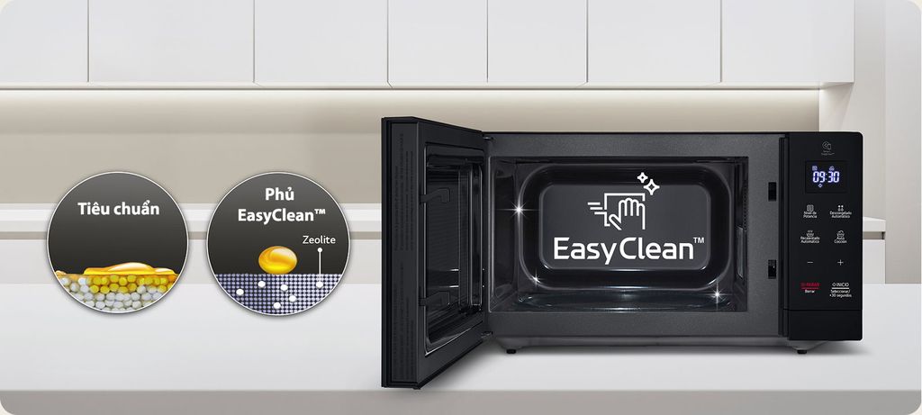 - Khoang lò được làm từ thép không gỉ phủ lớp chống dính kháng khuẩn Easy Clean™ giúp dễ vệ sinh.