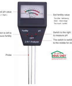 - Gạt nút sang bên phải (pH) để đo giá trị pH của đất.