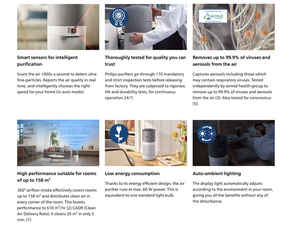 Máy lọc không khí Philips trải qua 170 bài kiểm tra bắt buộc và nghiêm ngặt trước khi xuất xưởng. Chúng được kiểm tra tuổi thọ và độ bền nghiêm ngặt, đảm bảo hoạt động liên tục 24/7.