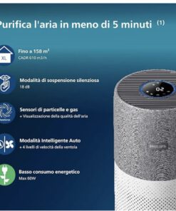 Nhờ thiết kế tiết kiệm năng lượng, máy lọc không khí hoạt động ở công suất tối đa 60 W. Công suất này tương đương với một bóng đèn tiêu chuẩn.