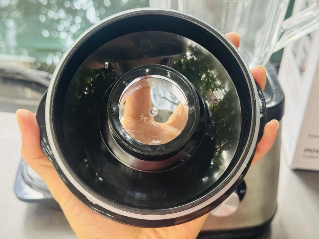 – Đậy nắp chính của cối xay lại thật chắc chắn. Sau đó đậy nắp phụ lên lỗ hở của nắp chính.