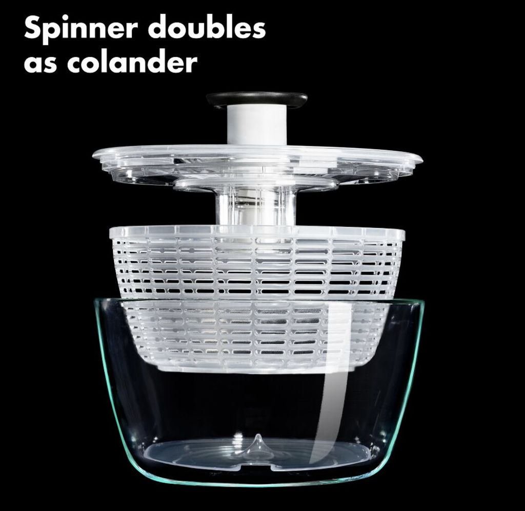 - Đa năng, không chỉ dành cho rau xà lách: Máy quay ly tâm rau xà lách OXO có thể dùng như một dụng cụ lọc rau củ quả và như một bát đựng. Quay rau xà lách, thảo mộc, đậu hoặc trái cây. Hoặc bạn có thể dùng nó để chuẩn bị bữa ăn như một dụng cụ giữ rau diếp – rửa rau diếp trước bữa tối, cho vào tủ lạnh và lấy ra khi sẵn sàng dùng.