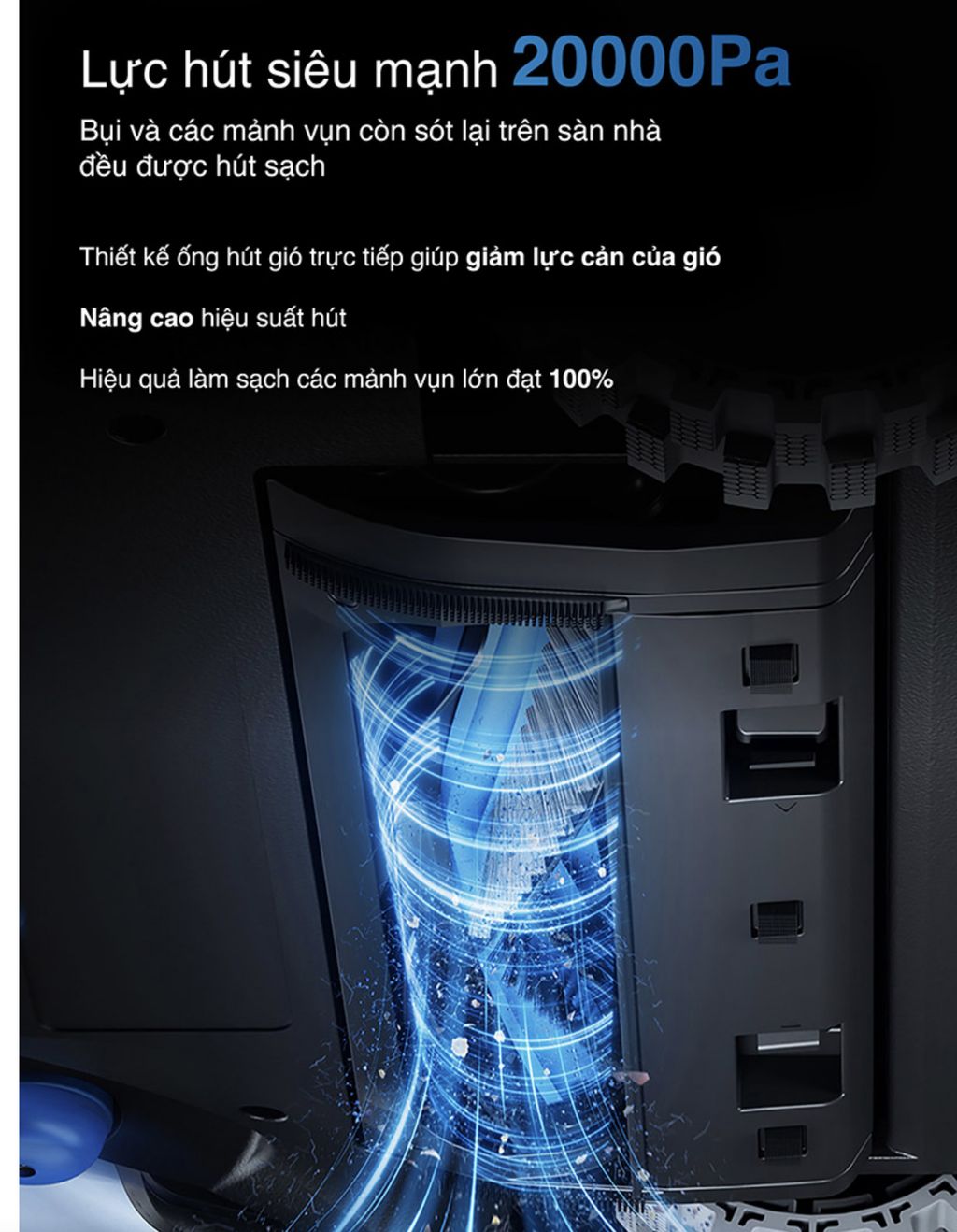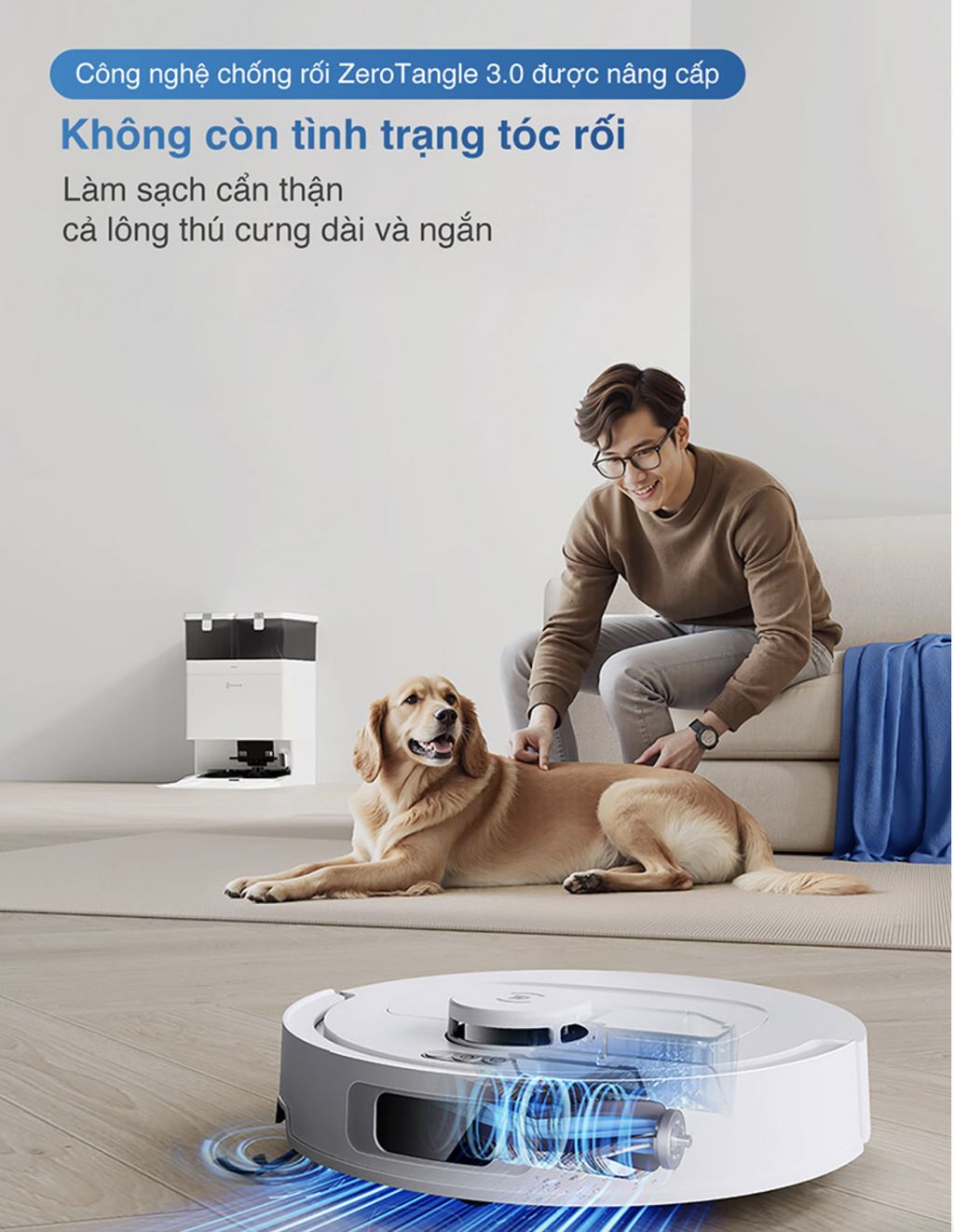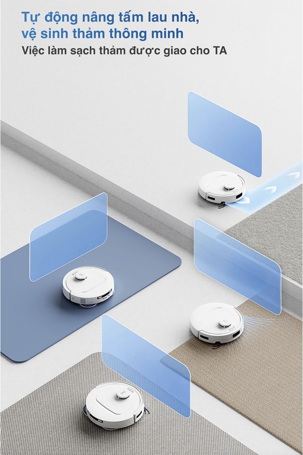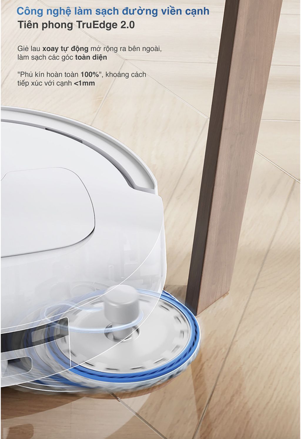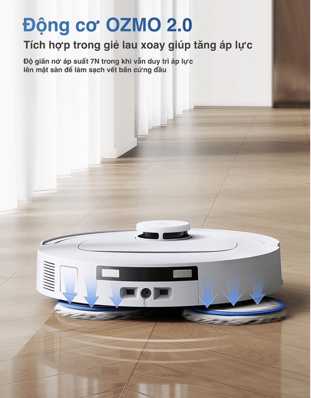 - Ngoài ra, nhờ bánh xe có lực kéo cao và thuật toán thích ứng tiên tiến cho phép dễ dàng vượt qua ngưỡng cửa hoặc gờ cao lên đến 20mm một cách dễ dàng, dù sàn nhà khô hay ẩm ướt, giúp robot di chuyển linh hoạt hơn giữa các phòng và trên nhiều loại bề mặt khác nhau.