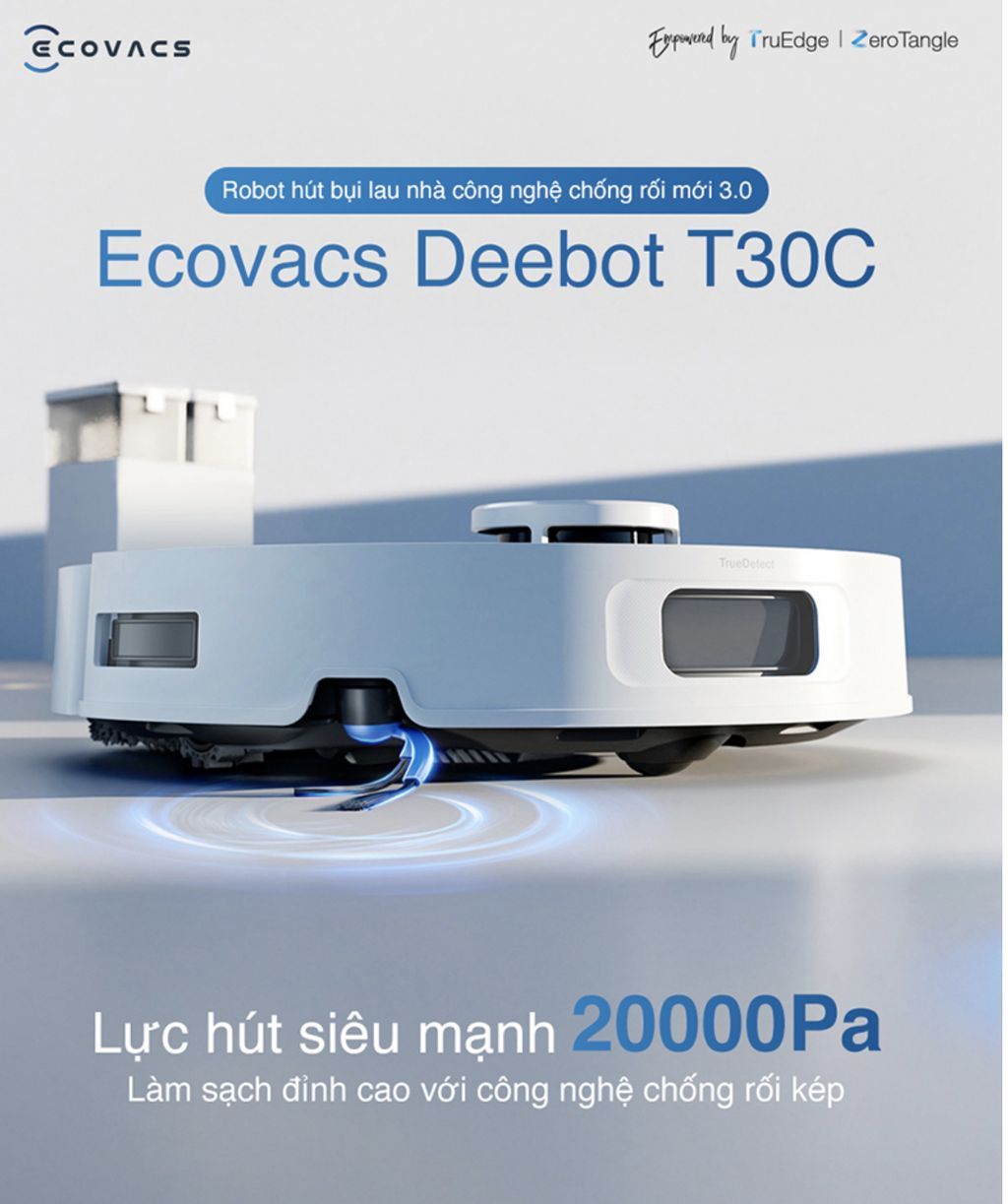 Bên cạnh đó, công nghệ TrueDetect 3.0 đã được nâng cấp, sử dụng ánh sáng có cấu trúc, tia laser hồng ngoại và cảm biến độ sâu để xác định đường viền của vật thể. Nhờ đó có thể quét và nhận diện vật thể một cách chính xác đến từng milimet, tránh chướng ngại vật hiệu quả hơn. Điều này giúp robot hút bụi lau nhà Ecovacs Deebot T30C di chuyển mượt mà, giảm thiểu va chạm, kẹt hoặc vướng víu, đồng thời mở rộng phạm vi làm sạch và đảm bảo an toàn cho ngôi nhà của bạn.
