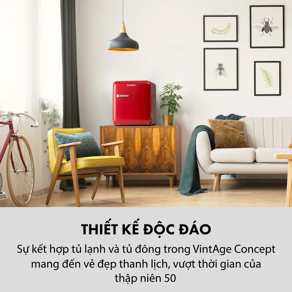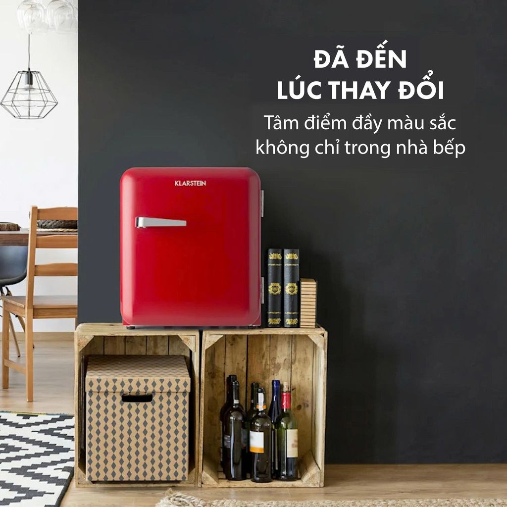 Tủ lạnh Klarstein Audrey Mini Retro 48L thiết kế phong cách cổ điển Retro thập niên 50. Màu sắc: đỏ.