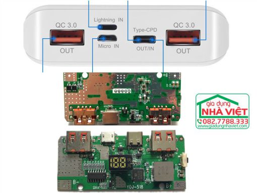 - Màn hình kỹ thuật số hiển thị dung lượng pin, tương thích sạc nhanh 22.5W. QC 3.0; PD 2.0; PD 3.0